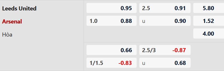 Lịch sử đối đầu trong 5 trận gần nhất đang nghiêng hẳn về phía đội khách với 4 chiến thắng cho Arsenal và chỉ 1 trận thắng cho Leeds. Đặc biệt ở lượt đi mùa này, Arsenal đã đè bẹp Leeds với tỷ số 5-0. Với việc chấp 1 trái, lựa chọn đội khách là phương án an toàn hơn cả. Chuyên gia soi kèo tin tưởng Arsenal sẽ là đội thắng kèo.