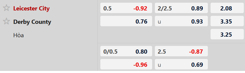 Nhận định kèo châu á Leicester vs Derby County: