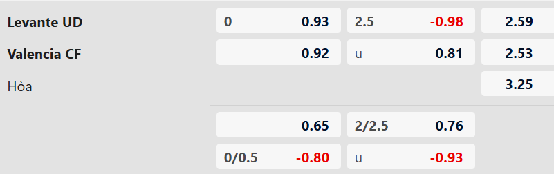 Nhận định kèo tài xỉu Levante vs Valencia: