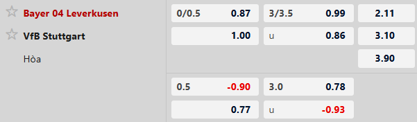 Leverkusen từ đầu mùa thắng kèo 9/15 trận tại Bundesliga. Trong khi đó con số này bên phía Stuttgart chỉ là 6 trận. Đội chủ nhà được đánh giá cao hơn với mức chấp 1/2 và đáng tin cậy với mức chấp này.
