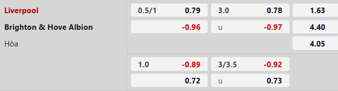 Nhận định kèo châu á Liverpool vs Brighton: