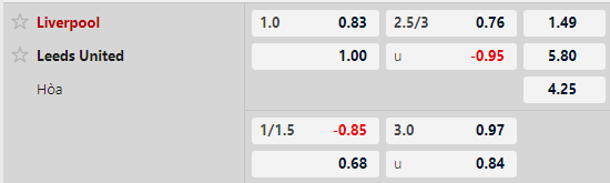 Nhận định kèo tài xỉu Liverpool vs Leeds: