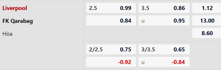Nhận định kèo tài xỉu Liverpool vs Qarabag: