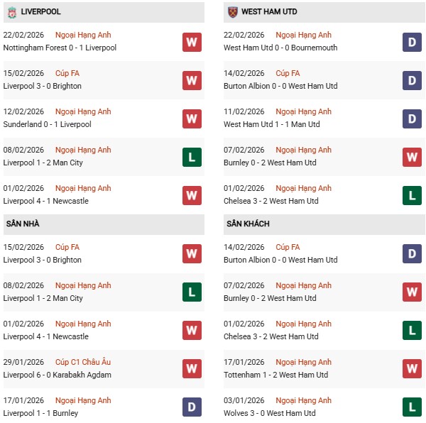 Sức mạnh Anfield: Lịch sử đối đầu tại Anfield là "nỗi ác mộng" với West Ham khi họ chỉ thắng 1 trong 58 lần hành quân đến đây (hòa 14, thua 43). Hiện tại, dù Liverpool không còn giữ sức mạnh hủy diệt như những mùa trước, họ vẫn đang có phong độ cao với 3 chiến thắng liên tiếp trên mọi đấu trường.