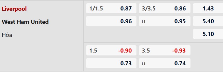 Nhận định kèo tài xỉu Liverpool vs West Ham: