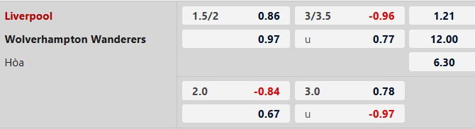 Tỷ lệ trận đấu: Liverpool toàn thắng 3 trận vừa qua theo tỷ số châu Á. Phía bên kia, Wolves thua 8/10 trận gần đây.