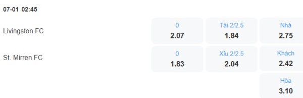 Nhận định kèo tài xỉu Livingston vs St Mirren: