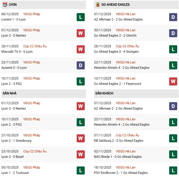 Thống kê phong độ Lyon vs Go Ahead Eagles: