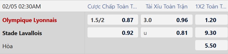 Nhận định kèo Lyon vs Laval, 02h30 ngày 05/02, vòng 1/8 Cúp QG Pháp. Nhìn vào phong độ và lực lượng thi đấu rõ ràng bầy sư tử đang được đánh cao về khả năng vượt kèo.