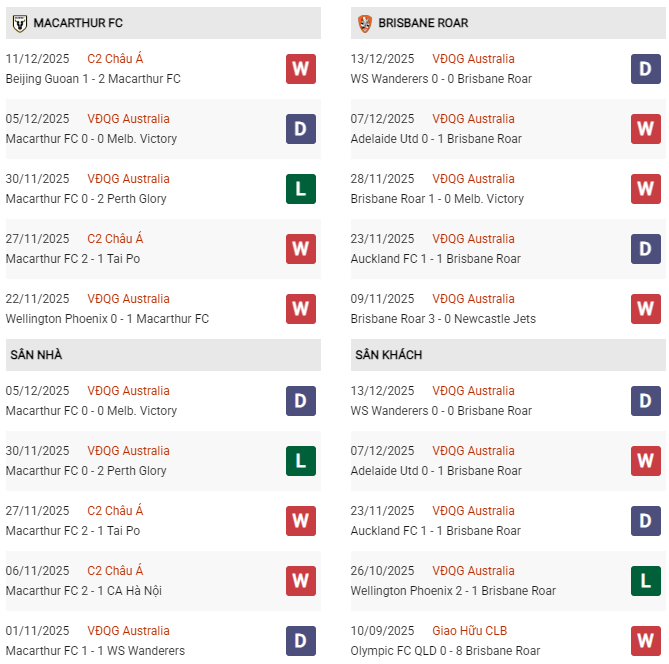 Thống kê phong độ Macarthur FC vs Brisbane Roar: