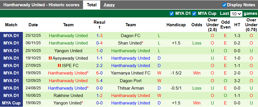 - 10 trận đối đầu gần nhất giữa 2 đội, Mahar United thắng 2, thua 8 trước Hantharwady.