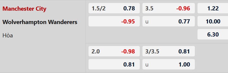 7/8 lần đối đầu đã qua giữa đôi bên chứng kiến tối thiểu 3 pha lập công. Hàng thủ của Man City đang cho thấy những lỗ hổng khiến các đối thủ tương đối dễ khai thác ở những trận vừa qua. Dù 3/5 trận gần đây của Wolves có tối đa 2 bàn thắng, nhưng trận đấu tới vẫn được dự đoán sẽ có từ 3 bàn thắng trở lên.