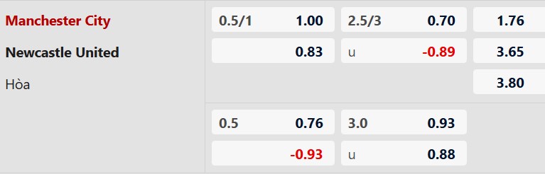 Nhận định kèo châu á Manchester City vs Newcastle: