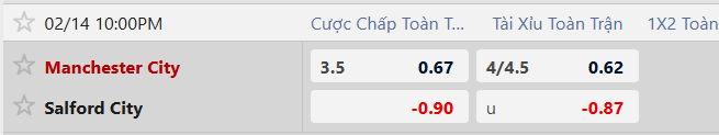 Thống kê bàn thắng: Các trận đấu gần đây của Man City tại cúp quốc nội thường nổ tài rất đậm (10-1 trước Exeter). Thêm vào đó, Salford thường bị ngợp khi đối đầu với các đại diện Premier League (thua tổng tỷ số 0-15 trong 3 lần gặp gần nhất với các đội Ngoại hạng).