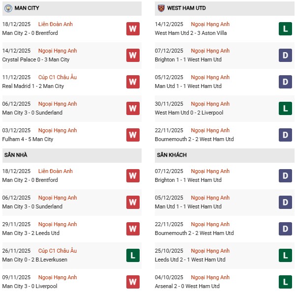 Ở chiều ngược lại, West Ham đang trải qua một mùa giải đầy sóng gió dưới thời Nuno Santo khi rơi xuống nhóm xuống hạng. “Búa tạ” vừa trải qua chuỗi 5 trận không thắng (Hòa 2, Thua 3), và những điểm yếu cố hữu trong khâu phòng ngự, đặc biệt là các tình huống cố định, liên tục bị khai thác. Phải làm khách trước một Man City đang hừng hực khí thế, mục tiêu khả dĩ nhất của West Ham có lẽ chỉ là hạn chế số bàn thua.