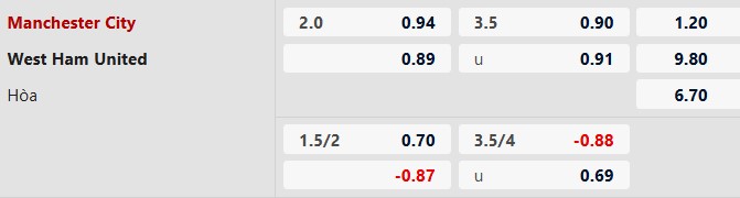 Nhận định kèo tài xỉu Manchester City vs West Ham: