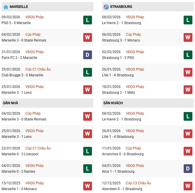 Tính chất "kỵ giơ": 5/7 lần đụng độ gần nhất giữa hai đội kết thúc với tỷ số hòa. Marseille dù có lực lượng mạnh hơn nhưng với sự hỗn loạn hiện tại, việc giành trọn 3 điểm trước một Strasbourg chơi phòng ngự phản công kỷ luật là thử thách không nhỏ.