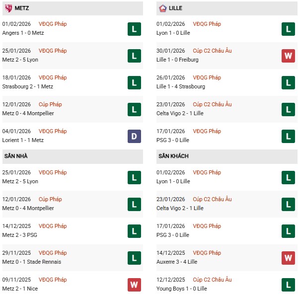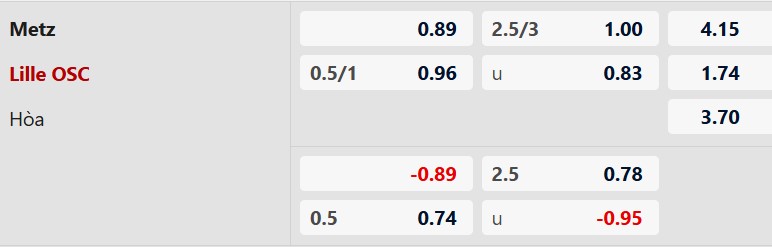 Lille: Dù cũng đang có phong độ không tốt (thua 4/5 trận gần nhất), nhưng Lille vẫn đứng thứ 5 trên bảng xếp hạng và sở hữu chất lượng đội hình vượt trội. Họ có thành tích đối đầu áp đảo khi bất bại 10 trận gần nhất trước Metz, bao gồm chiến thắng hủy diệt 6-1 ở lượt đi.
