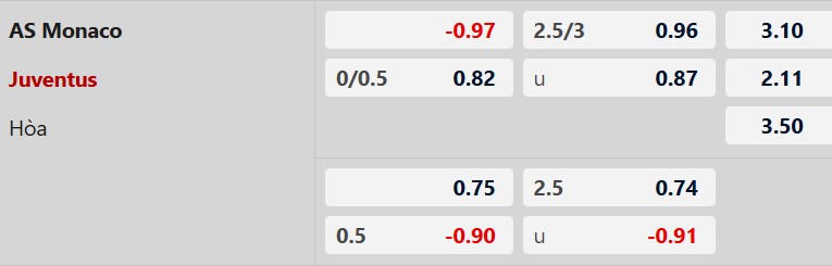 Nhận định kèo tài xỉu Monaco vs Juventus: