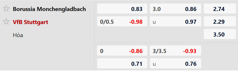 Nhận định kèo châu á Monchengladbach vs Stuttgart: