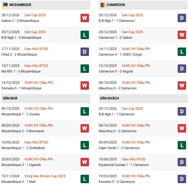 Nhận định kèo châu á Mozambique vs Cameroon: