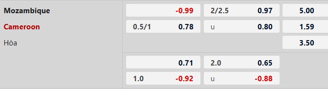 Cameroon thắng Mozambique ở cả 3 lần gặp nhau gần nhất. Thành tích áp đảo nà cộng với chất lượng đội hình nhỉnh hơn thì sẽ không có gì ngạc nhiên nếu phần thắng trận này thuộc về Cameroon. Nên với tỉ lệ kèo Cameroon chấp 0.75 thì cơ hội chiến thắng cho cửa trên là vô cùng lớn.