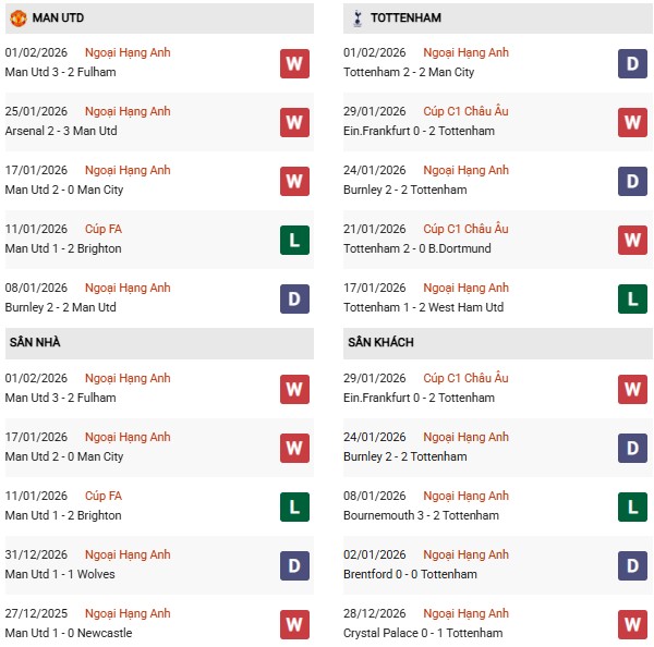 Hiện tại, Manchester United dưới sự dẫn dắt của HLV Michael Carrick đang có phong độ cực cao với chuỗi toàn thắng tại Premier League, giúp họ áp sát Top 4. Ngược lại, Tottenham đang rơi vào khủng hoảng lực lượng và phong độ trầm trọng.
