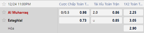 Nhận định kèo Muharraq vs Esteghlal, 23h00 ngày 24/12