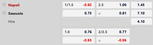 Nhận định kèo châu á Napoli vs Sassuolo: