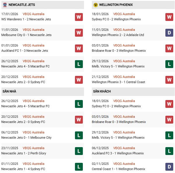 Wellington Phoenix: Dù xếp thứ 8 nhưng họ là "khắc tinh" của Newcastle Jets. Trong 3 lần làm khách gần nhất tại sân của Jets, Wellington Phoenix bất bại (2 thắng, 1 hòa). Đặc biệt, Wellington cực kỳ lỳ lợm khi đá sân khách, ghi bàn trong cả 9 trận xa nhà gần nhất.