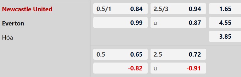 Cửa Xỉu: Các cuộc đối đầu gần đây giữa hai đội thường khá khan hiếm bàn thắng (3/4 trận gần nhất có dưới 2.5 bàn). Cả Newcastle và Everton đều đang gặp vấn đề trong khâu dứt điểm: Newcastle thiếu các trung phong cắm thực thụ do chấn thương, còn Everton chủ động chơi lùi sâu trên sân khách.