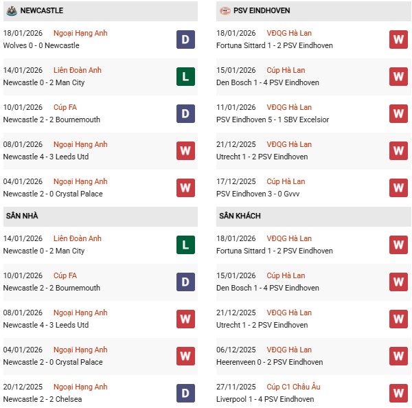 - PSV thắng trận đối đầu gần nhất trước Newcastle.