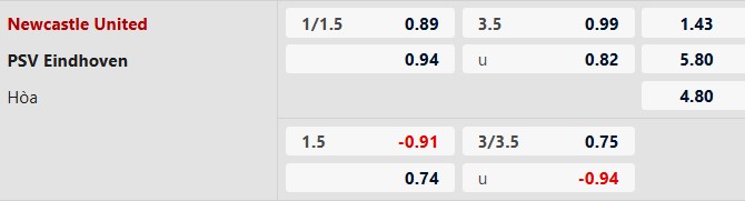 Nhận định kèo tài xỉu Newcastle vs PSV: