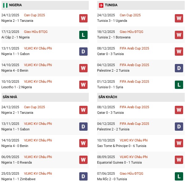 - 8 trận đối đầu gần nhất giữa 2 đội, Nigeria thắng 1, thua 1 trước Tunisia.