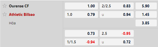Nhận định tỷ số Ourense vs Athletic Bilbao: