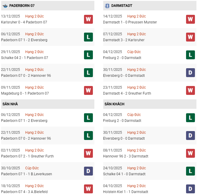 - Paderborn thắng 4 thua 6 trong 10 lần gần nhất gặp Darmstadt.