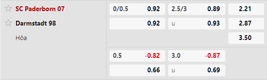 Nhận định kèo châu á Paderborn vs Darmstadt: