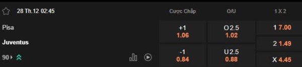 Juventus gây ấn tượng mạnh nhờ lối chơi khoa học, khả năng kiểm soát bóng tốt cùng hàng công hoạt động hiệu quả. Không những vậy, hàng thủ của đội khách cũng được tổ chức chặt chẽ, hạn chế tối đa những sai lầm không đáng có. Nếu thi đấu đúng với phong độ và đẳng cấp của mình, chiến thắng hoàn toàn nằm trong tầm tay của Juventus. Tuy nhiên, Pisa chắc chắn sẽ không dễ dàng buông xuôi khi họ có lợi thế sân nhà ở trận đấu này. Với kèo châu Á Juventus chấp 1 trái, lựa chọn đội khách vẫn là phương án an toàn hơn cho giới đầu tư.
