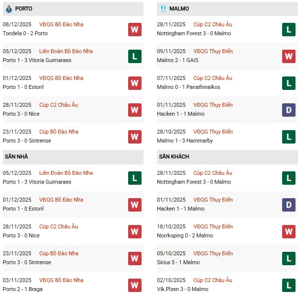 Sẽ là cuộc đấu giữa một Porto đang giữ vị thế cửa trên vững chắc và một Malmo phải gồng mình chống đỡ trong giai đoạn khó khăn. Khoảng cách trên bảng xếp hạng, phong độ gần đây và chất lượng hàng công lẫn hàng thủ đều nghiêng mạnh về phía đại diện Bồ Đào Nha.