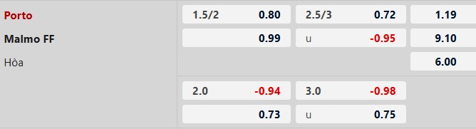 Nhận định kèo Porto vs Malmo, 3h00 ngày 12/12, phân hạng Europa League. Porto đã thắng 7 trong 10 trận gần nhất, đặc biệt là những chiến thắng có sự kiểm soát cao về mặt thế trận.