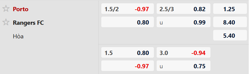 Nhận định kèo châu á Porto vs Rangers: