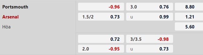 Trong khi đó, đối thủ Portsmouth chỉ là một đội bóng tầm trung ở giải Hạng Nhất Anh. Tại đấu trường EFL mùa này, Portsmouth có hàng công tệ thứ 2 với chỉ 21 bàn thắng sau 24 vòng đấu. Đối mặt với Arsenal rõ ràng là một thử thách cực đại và Portsmouth khó lòng tránh khỏi việc phơi áo. Chuyên gia dự đoán Arsenal sẽ thắng cách biệt từ 3 bàn trở lên.