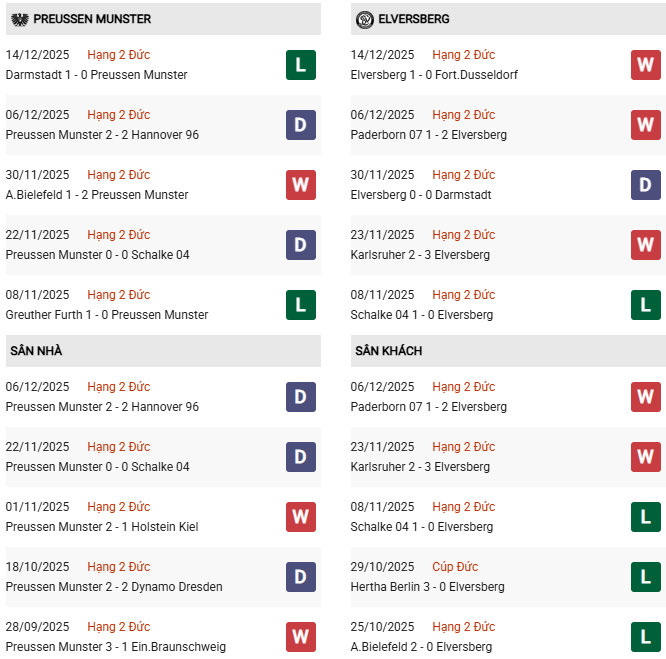 Thống kê phong độ Preussen Munster vs Elversberg: