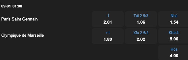 Lịch sử đối đầu trong 5 trận gần nhất đang nghiêng hẳn về PSG với 4 thắng và 1 hòa. Mặc dù PSG đang tạm xếp thứ 2 tại giải quốc nội, nhưng đẳng cấp và nhân sự của họ vẫn vượt trội hoàn toàn. Với mức kèo chấp 1 trái, PSG vẫn là lựa chọn đáng tin cậy.