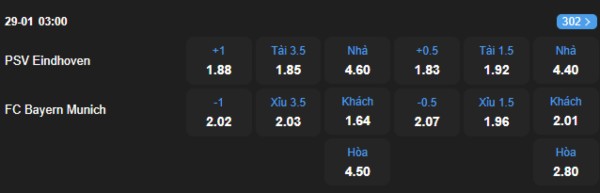 Nhận định kèo PSV Eindhoven vs Bayern, 3h00 ngày 29/1 hôm nay