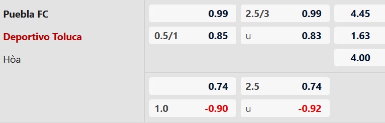 Toluca là lựa chọn tốt ở thời điểm hiện tại. Thống kê cho thấy trong 4 trận gần nhất, Toluca thắng kèo châu Á 3 lần và hòa 1. Ngay cả khi Toluca phải làm khách, họ vẫn đủ khả năng vượt qua kèo chấp 0,75 trước đối thủ Puebla.