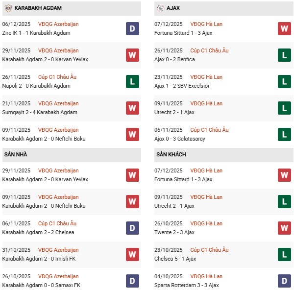 Cả 4 trận vừa qua của Qarabag đều dưới mốc tổng bàn thắng, tương tự là 5/7 trận gần đây của Ajax.