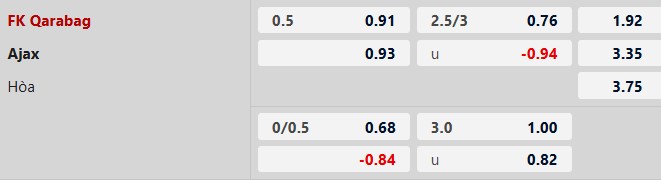 Qarabag thắng 4 và thua 3 trong 7 trận gần đây theo tỷ số châu Á. Phía bên kia, Ajax toàn thua 5 trận ở Champions League.