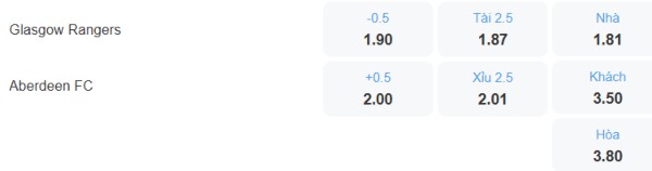 Kèo tổng số bàn thắng trận này chỉ là 2.5, con số không cao. Trong khi đó hàng công Rangers vừa có trận đấu tốt khi thắng Celtic 3-1 nhưng hàng thủ của họ không trận nào giữ sạch lưới. Đây là điều giúp đội chủ nhà ghi nhiều bàn vào lưới đội khách đang không có phong độ tốt. Trận đấu vì thế được đánh giá có nhiều bàn thắng.