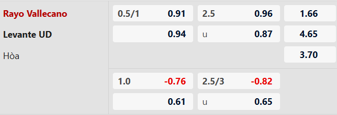 Nhận định kèo châu Á Rayo Vallecano vs Levante: